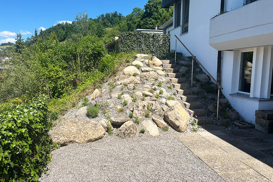 Unsere Galerie zeigt Gartenbauprojekte, die wir mit Herz, Handwerk und Verantwortung realisiert haben. Dabei legen wir grossen Wert auf nachhaltige Lösungen, naturnahe Gestaltung und die Förderung der Biodiversität. Jeder Garten entsteht im Einklang mit seiner Umgebung und unter Berücksichtigung der individuellen Wünschen unserer Kundschaft.